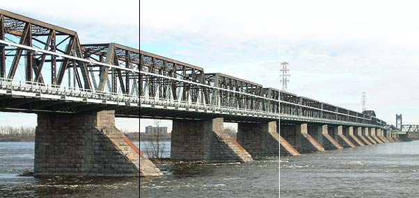 premier pont, ferroviaire, sur le fleuve Saint-Laurent.